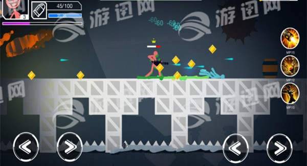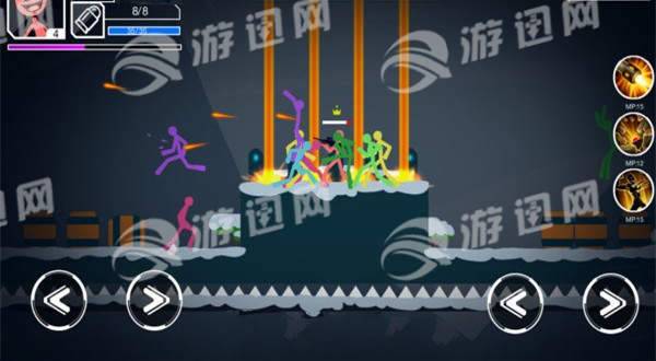 3、为了不被敌人击中,需要点击屏幕上的方向键来移动火柴人。