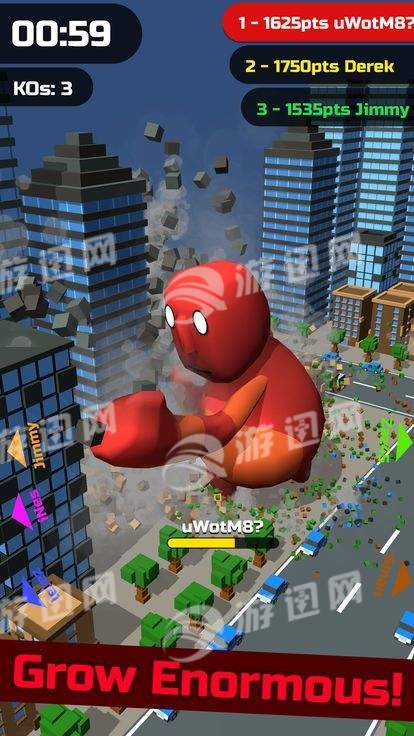 Smash City是由海外游戏厂商旗下全新推出的核心物理休闲对战游戏,游戏采用了核心的3D引擎打造,还原了一个庞大恢弘的城市世界,在这里你将扮演一名可以肆意破坏的疯狂巨人,你需要利用自己的操作来破坏这座城市,你可以摧毁眼前的各种建筑物,还有其他的敌人,不断收集属于你的积分奖励,同时扩张自己的体型吧!