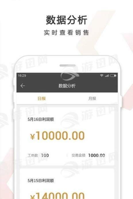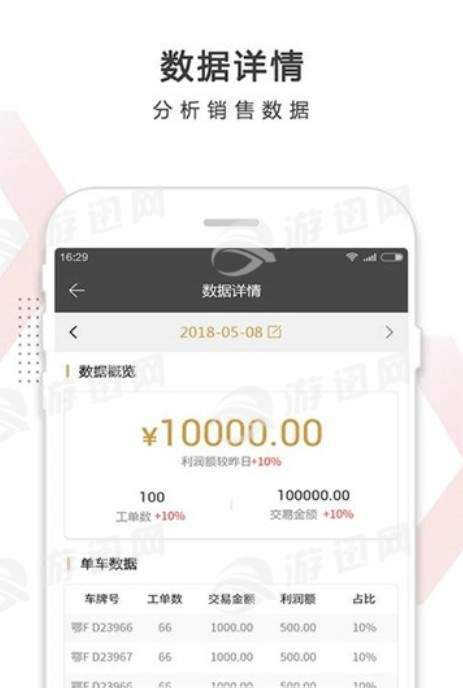 (1)数据分析版块支持按日、按月查询所加盟车辆的工单数、交易额、利润额;