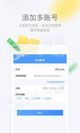 矿多多,这是款相当实用的挖矿管理平台,矿场主不仅可对矿机动态进行实时掌握,及时地发现矿机问题,让产出可以变得稳定,将损失减少到最低,还能轻松添加超多个账号。