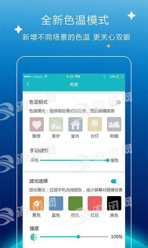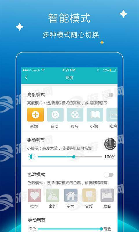 色温模式:选择相应模式的色温,预防眼睛疾病