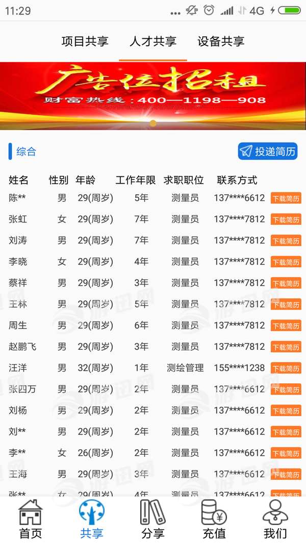 人才共享:提供专业的测绘人才资讯,人才共享,互联互帮