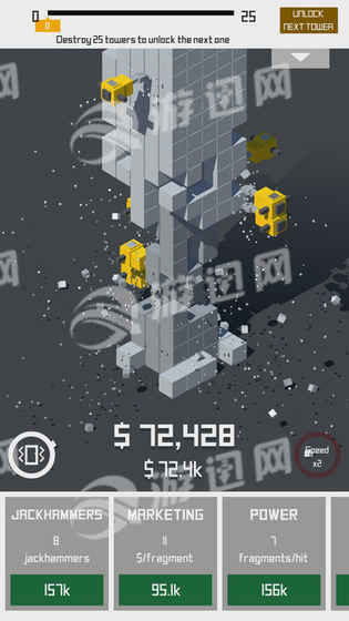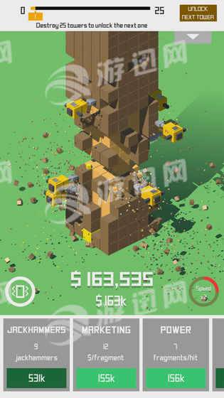 破坏模拟器(Jackhammer Tower)是一款全新推出的电钻破坏模拟街机游戏!游戏主打经典的放置元素,同时还支持玩家亲自点击和破坏,进入游戏,无限制破坏各种高塔和建筑,将你眼前的所有元素钻碎吧!