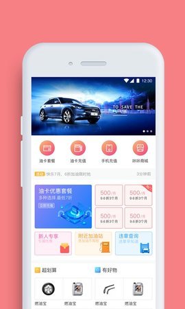 油咔咔app支持多种油卡优惠套餐,多种选择最低7折;新人专享,专属优惠;附近加油站,急加油不用愁;违章查询,违章早知道;还有商品精选,美妆个护、 旅行必备、潮流生活以及汽车用品。
