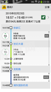 选择出发,到达,时间,即可获得多种换乘方案。包含:路线,时间,票价,距离。