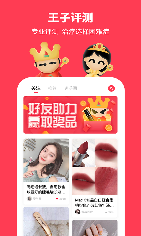 首页主要用于展示评论内容,主要分为关注、推荐、逛游圈四个栏目,每个栏目都有对应的评论;