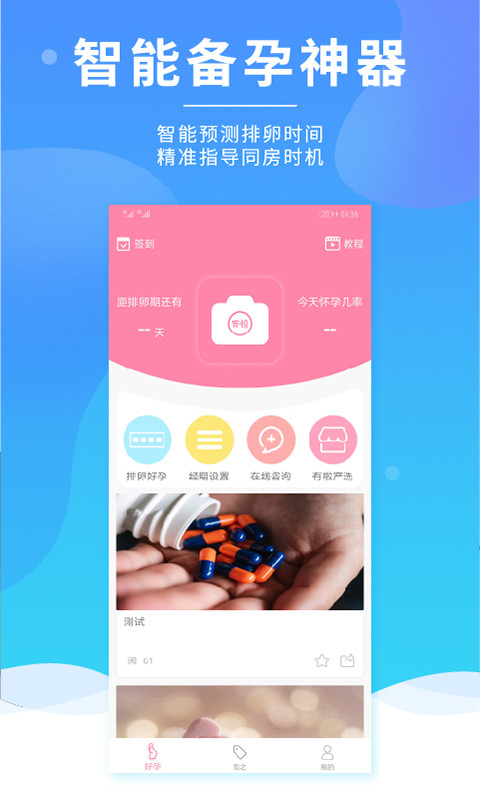 【智能】自主研发备孕试纸、扫描既出好孕率、AI助孕当妈妈。提供健康记录、数据图表分析等使用的备孕管理工具及内容。