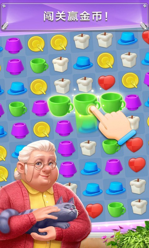1、简洁美观的游戏界面,海量精心设计的游戏关卡等你来玩,趣味三消玩法;