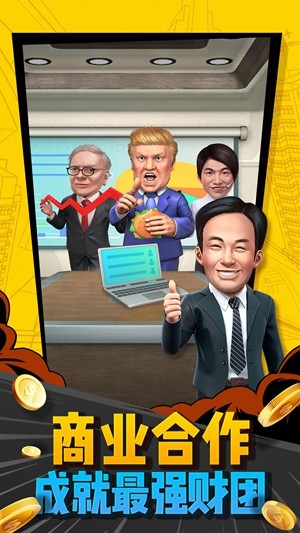 招募精英与其他的大老板进行合作,与商业联盟达成合作成就最顶尖的团队。拥有超多的玩法,日常奖励也是非常的丰富。力争更高的排行榜与大家一起真多荣耀。尽情的展示你的商业天赋吧!