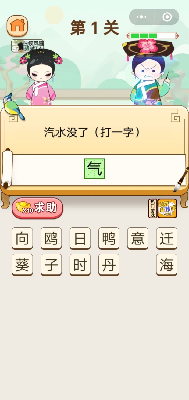 猜谜小娘娘事一款玩法很简单的益智解谜手游,在游戏中你需要根据系统给出的问题来回答出正确的答案,每一个谜题的难度都是不同的,随着游戏的进行,你遇到的谜题会越来越难,卡通风格的游戏界面,带给你不一样的视觉享受,认真的分析题目,充分的锻炼自己的大脑,解锁更多的道具来帮助自己吧。