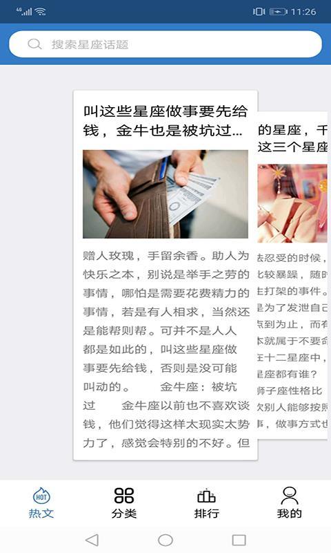 排行榜为用户带来最新、最热的星座美文,点击即可进入查看;