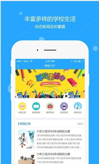 教育是家长的以身作则、学校的尊尊教诲以及学生自己的乐观积极好学组成的,三者缺一不可,好的教育可以更加完全的开发孩子自身的潜力,而运城智慧教育这一款软件就是将学校、家长还有学生三者连接起来的软件,软件让学校更合理的培养学生,让父母更准确的教导子女,让学生可以自己懂事成长,如果有对这款软件感兴趣的小伙伴可以来下载使用。