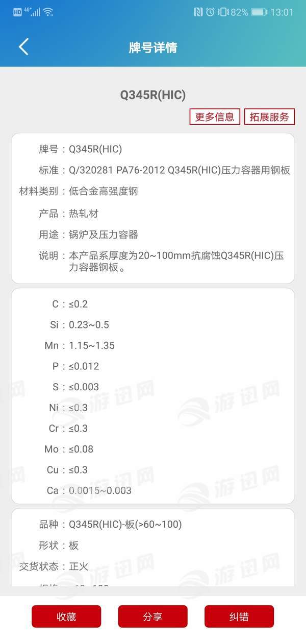 3.钢材智能匹配功能,可根据输入牌号或自定义材料进行匹配,并选中要对比的材料,进行详细信息对比。