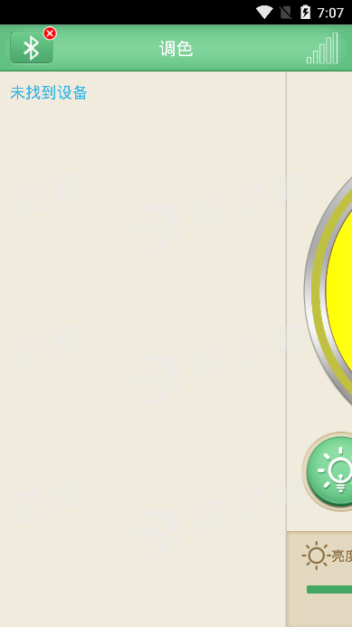 点击灯泡进行连接,连接成功之后,在色盘上滑动以调整颜色,点击开关按钮可以开关灯,滑动亮度条以调节亮度