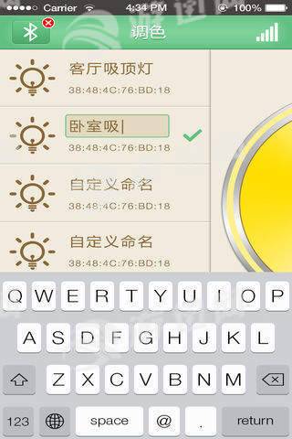 双色灯是专为智能家居打造的软件应用,用户可以轻松连接设备,为家中的电器连接智能终端,软件十分小巧,不占用内存空间,打开应用可以调节需要的亮度和色彩,最新推出的蓝牙连接功能,信号更强,调节需要的光感度,为您的生活增添更多乐趣,自定义添加调色设备,更改设备名称,一手掌握亮度需求,欢迎需要的朋友。