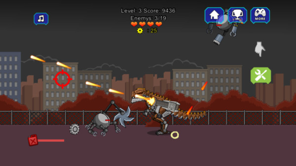 《机器终结者暴龙》是一款角色扮演的战斗冒险游戏,玩家在游戏内扮演一个被制作出来的机器人恐龙战士,所需要做的任务就是狩猎那些真实存在的未来恐龙,并且不断的在城市内战斗,直到完成任务尽情的厮杀!游戏内设很多不同的地图可以选择,每个地图的场景和敌人都不同,快来体验尽情厮杀的爽感吧!