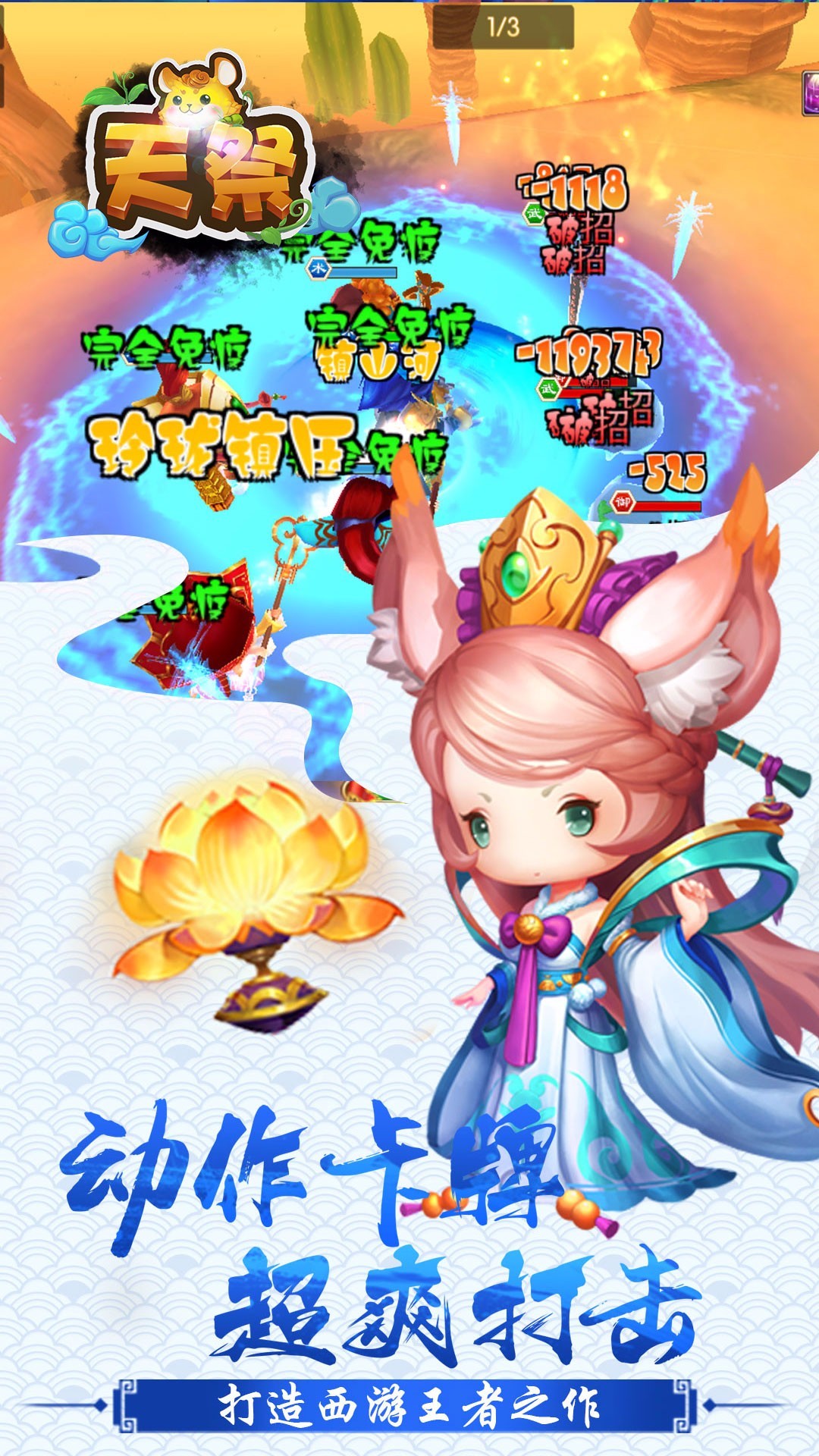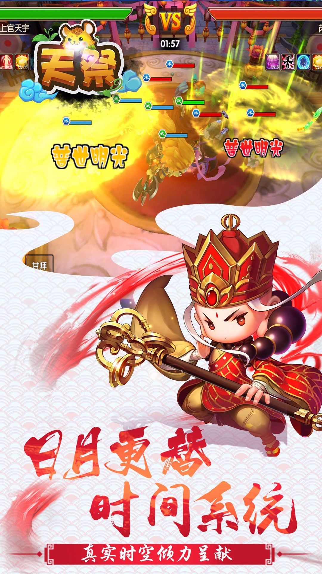 天祭手游是一款以西游为背景的卡牌对战类游戏。游戏画面是卡通Q版风格,精致清晰,采用回合制玩法,剧情新颖有趣,玩家可以通过完成主线任务了解不为人知的西游故事,还有超多神仙卡牌等玩家来获取,招募到合适的卡牌,玩家可以自由排布,发挥他们各自的能力,战斗并不繁琐,很适合闲暇时间娱乐一下。