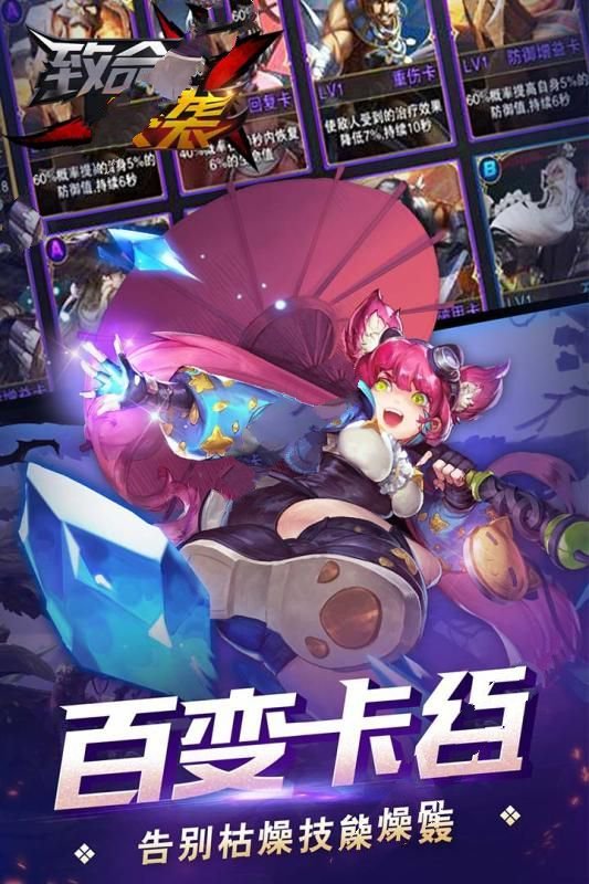 1、经典的卡牌养成策略类型的对战玩法,精致细腻的画面以及卡通的形象特点;