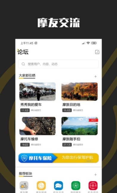 摩乐途,是一款为摩托车爱好者提供的综合交流平台,提供了行业资讯、摩旅分享、骑行路线、附近车友等实用功能。