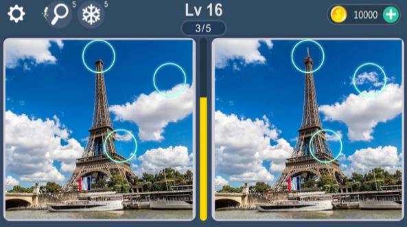 玩家需要找出这两张图片的不同之处。可能有五个或十个。这是对人们观察能力和缜密性的一次巨大考验。