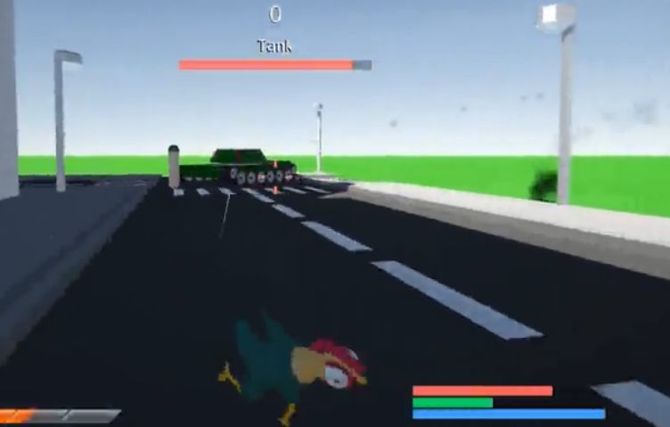 《当鸡模拟器》是一款非常魔性夸张的游戏,玩家在游戏中变成了一只鸡中战斗机,因为太过于强大,在城市中引起了骚动。人类派出了军队前来收服你这只鸡。不过没关系,战斗鸡不怕,和坦克,大兵进行正面对峙,摧毁他们的军队,让人类尝尝失败的滋味,证明鸡才是地表最强的生物