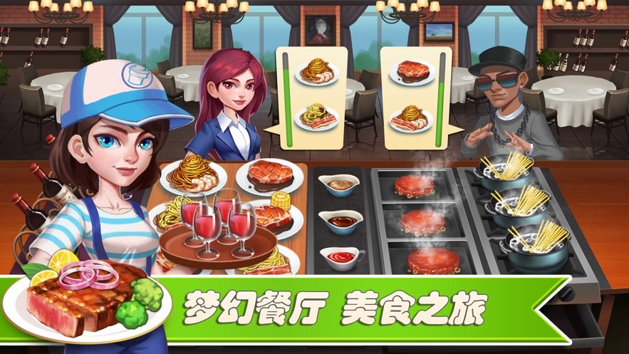 升级厨房,好的烹饪道具可以帮助厨师更好的烹饪食材,装扮餐厅吸引更多的顾客,还能获得额外的金币和成就,成为明星餐厅。