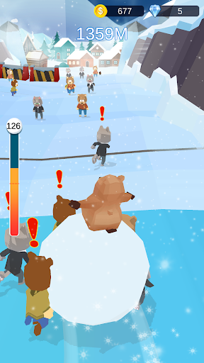 在游戏中,玩家通过控制雪球来保持向前奔跑以避免各种障碍,将动物在水平中滚动到雪球中,得分越多,得分越高,直到挑战结束。