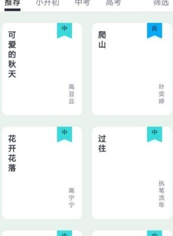 状物、记事、写人、写景、应用文......每种类别都有不同的等级难度,