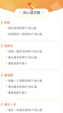 读资讯:阅读一篇资讯获得1个润心值,每日最多获得3个润心值,重复阅读不累计。