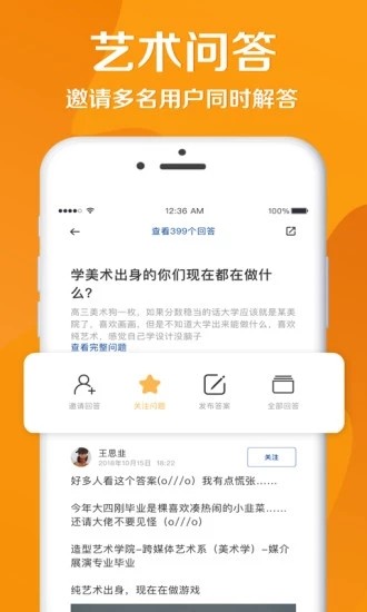 「艺术·问答」邀请多名用户同时解答: 所有艺术疑问都能在艺学士找到可被信赖的解答。帮助咨询者快速、有针对性地解决问题,充分实现专家及各类专业人士的知识价值