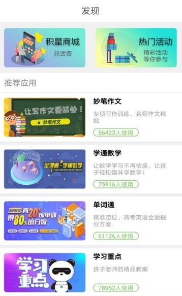 应用中心精选了各类教育应用,包括安全定位、在线答疑、同步练习等。和教育客户端在手,一站登录,直接可以使用各类应用。