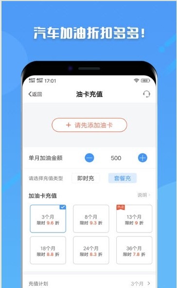 优惠多多,油卡续费,加油折上折,现在新用户注册还将获得礼包!