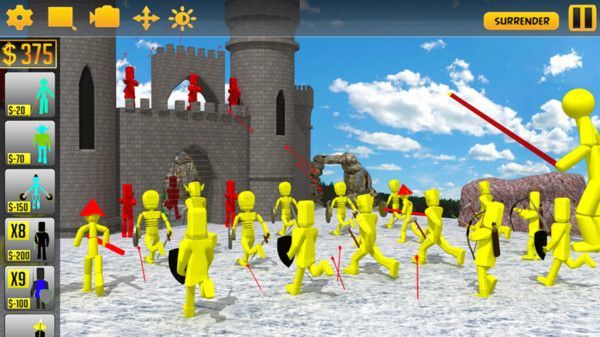 计算好你的你的金钱,招募适合的火柴人士兵,攻打敌方的军队城堡,称霸火柴人世界。