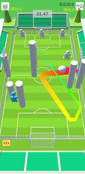 2、在游戏中,玩家与玩家之间会有着一些障碍物,接住这些你可以踢出,意想不到的进球;