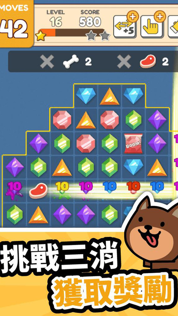 放置狗狗游戏是一款治愈风格的养成类游戏。玩家在游戏中有一条小狗,需要好好爱护它。当然首先狗的形象玩家是可以按照自己的喜好选择的。然后玩家每天都可以给狗狗投食,陪它玩耍,还能够给它搭配造型,甚至还能给狗狗洗澡。如果家里没有食物的话,玩家还可以去玩一会儿消除游戏,可以为自己的狗狗赢得一定数量的美食。
