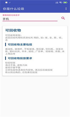 3、很快就能搜索到你想搜的物品是什么垃圾,而且绝对是很准确的,还会告诉你投放的要求。