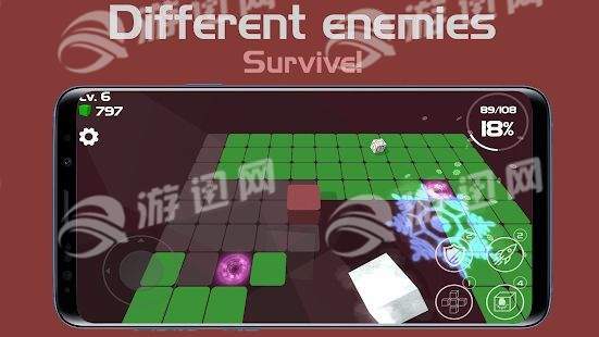 2、易于上手的游戏玩法,通过虚拟摇杆移动并躲避进攻,而后以点按破坏方块!