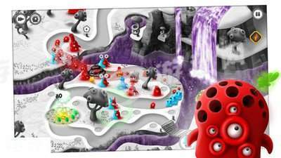 游戏中还有很多有意思的设定——手指在画面中滑动会带出一串绿色的星光;你收集的每一刻宝石都会变成天上的星星,它们会组成果冻们特有的星座(那只蓝色的果冻,动作可不可以不要这么妖娆);果冻们住的星球,其实是一个听着音乐的奇怪四脚生物,手指搓动它转圈时它还会woo地惊叫……