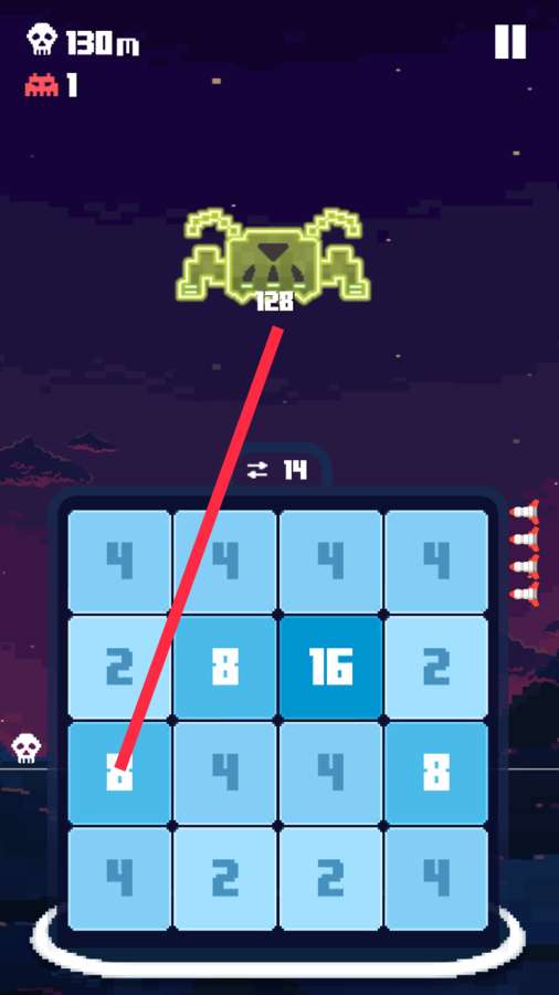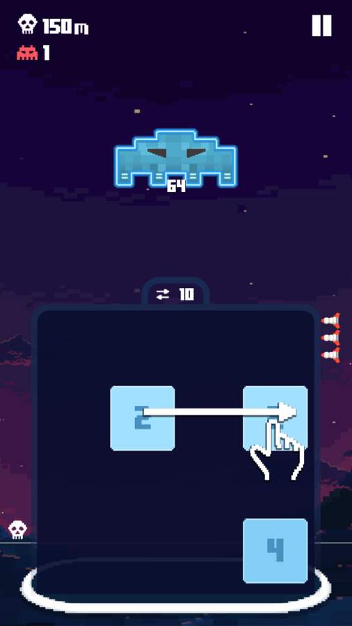 《(Invaders 2048)》是一个很有趣的合并游戏,这个游戏主要是靠玩家将下降过来的数字进行合并,然后缩小空间,你的砖块的数字会越变越大,数字越大,你得到的分数也就越大,分数兑换金币可以解锁新的道具进行游戏.
