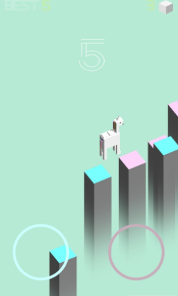 萌跳是一款3D卡通像素风格以小马驹跳跃为题材的休闲娱乐类游戏。游戏的画风非常的简洁清新,操作特别的容易上手,在游戏中,玩家将要操控一匹像素小马驹前进,你前面的平台会有粉和绿两种颜色,对应着你的左右手各一种颜色,跳的时候注意要它们颜色相匹配。