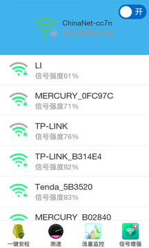 一款实用强大的 WiFi 管理工具1.一目了然的列表显示周围 WiFi 接入点信息和当前连接的 WiFi 的详细信息 ;2.WiFi 局域网邻居,侦测所有当前连接到此 WiFi 的客户端 ,防蹭网,兼容所有路由器; 3.WiFi 信号折线图,实时显示周围 Wi