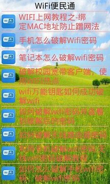 WiFi便民通是一款手机免费上网的必备工具,详细介绍了百万免费wifi热点、100个城市的开通wifi热点信息,让你随时随地畅享免费流量。省钱、省流量!WIFI上网日益普及,特别是大城市中随便在一个小区搜索一下就能找到好多热点,不过除了公共场所以及菜鸟用户愿意把自己的wifi给别人共享,但是我们有方法,就能随意使用免费的wifi了!......