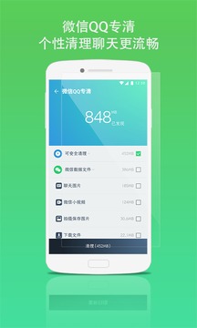 2、垃圾清理 轻松清理应用数据,做到真正的一键清理语音、图片、视频、表情包、文件、无用安装包、垃圾缓存,为手机轻松瘦身!