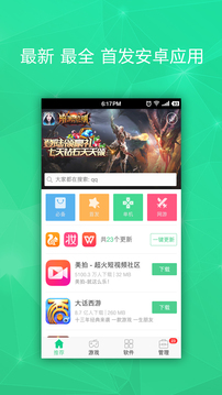 更畅快的体验,更加完全的热门游戏收录,更6的游戏礼包放送,更简明的界面与分类设计,让你轻松找到想要的游戏应用。更加入了贴心的手机内存清理功能,让您的手机随时随地保持健康状态。