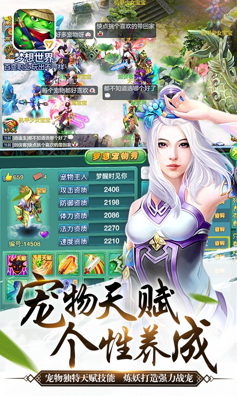 帅气战宠各显神通,天赋技能独一无二,与生俱来。既有萌萌梦想企鹅,又有霸气死亡骑士,与你共聚唯美仙侠世界。