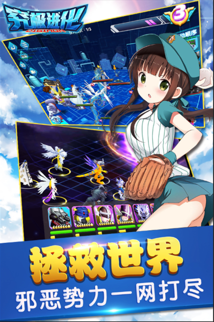 《究极进化》是一款日漫改编,还原度较高的回合卡牌RPG游戏。致敬经典,百款数码宝贝100%真实还原,亚古兽、加布兽童年伙伴与你携手成长,冒险就要不断进化!超酷炫合击大招,高还原宝贝等你收集!数码宝贝,快来在游戏中重温一下童年里的那些经典吧!