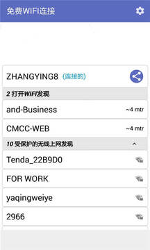 小编今天介绍的是WiFi连接软件,会自动对你周围的WiFi进行检测,一键就可以破解密码进行连接,哪怕是隐藏的WiFi也可以检测出来,让你出门在外都能免费使用到WiFi,不需要手动密码连接,直接点击连接就可以了,WiFi的安全性和网速都会为你呈现出来,让你放心的使用WiFi。