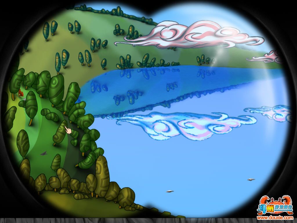 第二章 吃过饭后两人决定到湖边去看看。到厨房去,波波捡起地上的弹簧。离开房子,从屏幕下边中间位置来到一棵苹果树前,波波说需要一个铁罐来抓虫子。波波跟猫咪交谈后,猫去抓树,树上掉下来一个苹果。托托去捡起苹果。返回房子前,往右走进入树林,从左边的叉路走,看到有枯树拦住了路,过不去。托托从树上拿下一张纸片,发现是半张纸。树上的树枝掉了下来。波波捡起树枝用刀修成一个门把手。返回树林,从中间的叉路走,又回到了枯树前,看来是路标坏了,要先修好路标。 回到房子里,把木把手装在门厅右边没把手的门上,打开门,波波从里面拿到一袋水泥。托托从里面拿到一个空线轴、一根鱼杆和一个空桶。到工坊门前,波波把水泥放进空桶,再用桶从工坊前的水盆里装一些水。到树林里枯树处,用桶在地上的沙堆上装一些沙子。把桶里的混合物倒进路标下的洞里,路标修好了。顺着路标指引的方向来到大树洞前。 波波过去敲了敲大树洞,从边上出来一只仓鼠,它说要建房子需要帮忙。波波把空玻璃瓶给了仓鼠,得到一个铁罐子。但它说没盖子没法用,再把袜子给它。仓鼠回到了自己的窝里。跟着它进去来到一个园子,看到地里种着萝卜,波波想把它拔出来,可是萝卜长着刺会扎人。托托用绳子把萝卜绑住后波波把它把了出来。进入仓鼠的房子来到客厅,进入可边的门,看到笼子里有一只鹦鹉,跟它交谈可它什么也不肯说。托托把萝卜给它,它吃完后说桌上的卷轴堆里会有有用的东西。波波查看卷轴堆,从里面拿到一幅画着热气球的画和一张纸片。把纸片和在枯树处捡到的纸片合在一起,上面写着打开树洞的方法。 到树洞前,按纸上的方法把树洞四个角的树枝调整好,右上角的树枝够不着,把鱼头给猫咪,它会上去把树枝扳下来。树洞的门打开了,两人想进入树洞,可提示说钓鱼的东西还没准备好。 离开树林,到苹果树处,波波观察一下左边石雕上挂着的指示牌,呼机掉了出来。去捡呼机,呼机振动了带着整个地面都开始振动。从地上爬出了一条虫子,虫子又打了个洞钻回了地里。波波再去拿呼机,等虫子爬出来时,托托在右边的虫洞上使用铁罐就可以抓到虫子,抓三条就够了。 到房子里的卧室,鱼缸上面有个自动喂鱼机,把蛋糕放上去,拉动鱼缸下的把手开始喂鱼。把绳子绑在磁铁上,在鱼缸里的齿轮上使用,拿到齿轮。 到工坊使用思想创造机,波波画出了一个增产器的图纸。按照图纸分别把铁盒子、漏斗、弹簧和齿轮放在工作台上,增产器做好了。现在可以进入树洞到湖边去了。第三章 两人进入树洞来到了森林里,捡起树下的网。托托看到了一只青鸟,说如果能召唤出它就能得到好好运。往里走,到河边看到一只蜻蜓,波波用网抓住。进入左边的芦苇丛,看到一只大青蛙。波波去拿河边的一根芦苇,可青蛙不让。把蜻蜓放在芦苇上,青蛙想吃掉蜻蜓却被打进了水里。波波用刀割下芦苇,再用刀修整一下,芦苇成了一根笛子。 再往里走,到一棵大树边,地上有个树墩可以当桌子用,波波说这真是个钓鱼的好地方。再往里走到树林里,看到吊床上有一只生病的小鸟,波波把胡椒粉给它用,小鸟的病好了,又可以唱歌了,波波要和小鸟合凑一曲。在小鸟身上使用笛子,进入小游戏,点击小鸟,根据它唱出的曲子,调整好笛子上的按键,再点击笛子嘴,吹完后小鸟变成了青鸟并答应波波会给他好运。 到大树边,波波把鱼杆扔进湖里,一条大鱼游了过来,可是却把鱼杆拉进了湖里。波波把增产器放在树墩上,再把虫子放进去,第一次和第二次都失败了,第三次终于做出了一条很长的虫子。托托用空线轴把虫子卷了起来,波波把虫子卷交给了树上的乌鸦,再点击乌鸦,它们把虫子放了下来,一会大鱼来吃虫子了,波波过去抓鱼,托托也去帮忙,终于抓到了,大家开始高兴的吃鱼。