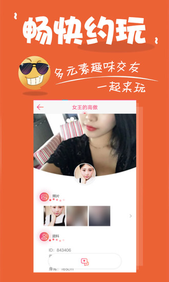 工作环境接触异性少,朋友圈小,性格内向,上网不方便等等等,再也不是问题,单身男女聊天交友神器,真实高效的同城交友聊天约会平台。奇妙的交友聊天应用,让你与意中人一拍即合。使用业内先进的技术,实现了音频,图片,表情,文字等聊天交互方式,为您的聊天交友添加许多乐趣;同时通过大数据分析,及时为您推荐默契度99%的异性,你可以轻易的找到附近单身异性,约会、聊天、倾诉、分享自己的生活趣事,让缘分彼此不错过