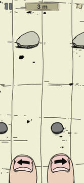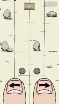 玩家需要运用自己的左右脑判断,手指控制石头躲避障碍。